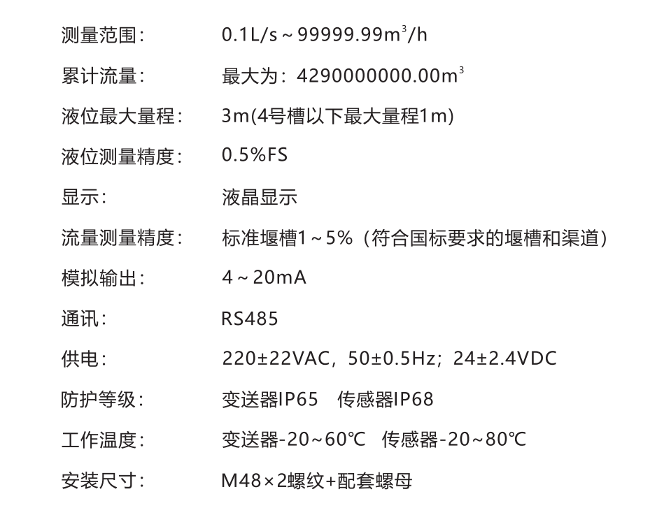 產品簡介: 超聲波明渠流量計GFC500的功能特點有:內置多種算法,適合各種標準水堰;堅固穩定的超聲波傳感器適用惡劣工業場合;中文菜單,操作更方便;探頭互換性強,備件更換更方便;盲區可以人工設置,屏蔽探頭附近的干擾信號;換能器內置溫度傳感器,實時自動溫度補償