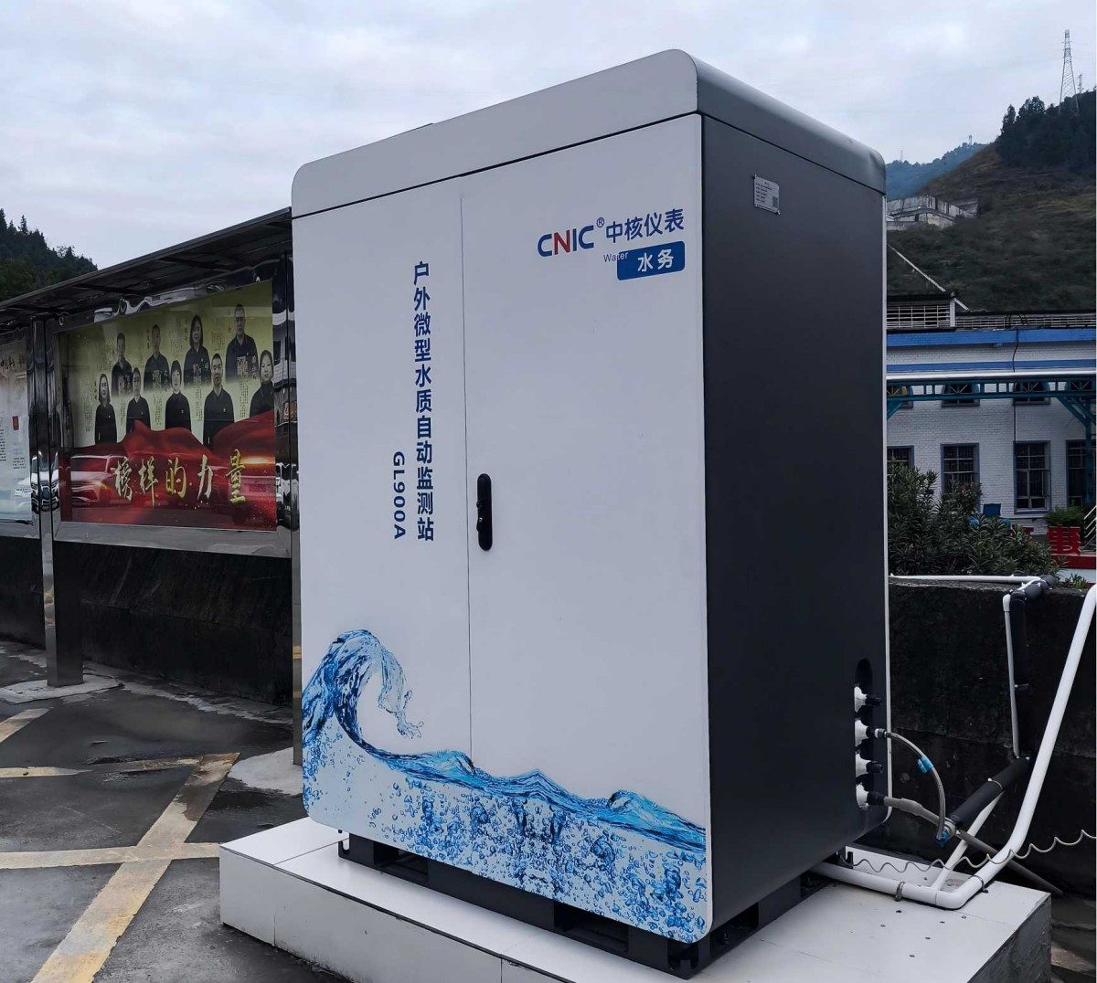 中核儀表作為本次項目設備供應商,結合客戶實際需求,經過現場踏勘,提出系統解決方案。采用集成總裝方式將取水單元、水樣預處理單元、分析儀器及防雷輔助單元集成到柜式箱體中,支持市電供電,涵蓋傳統水質自動站的全部功能。